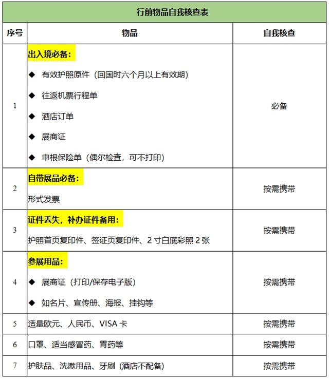 注2:展后有商務(wù)拜會行程的,請帶上客戶邀請函備用;